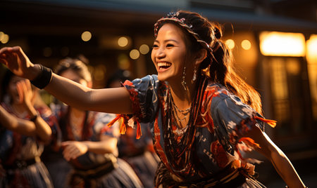 Colorful traditional festival celebrates indigenous cultures with dancing and performances generated by artificial intelligence