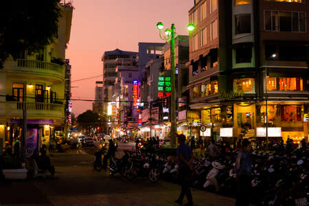 Ho Chi Minh City, Vietnam - February 28, 2018: Night city streets and nightlife in the center of Ho Chi Minh City
