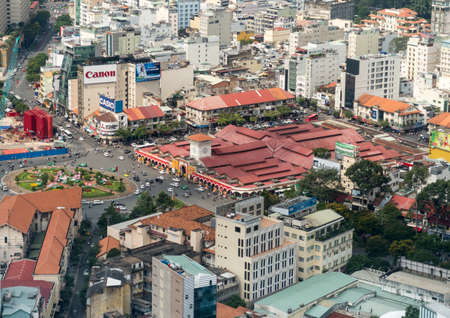 Aerial view of Ho Chi Minh City (former Saigon) Ben Thanh Market in Vietnam