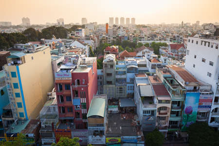 Ho Chi Minh City, Vietnam - February 08, 2016: Sunset view of city skyline from Viet Nam Quoc Tu Pagoda in Ho Chi Minh City, Vietnam on February 08, 2016.