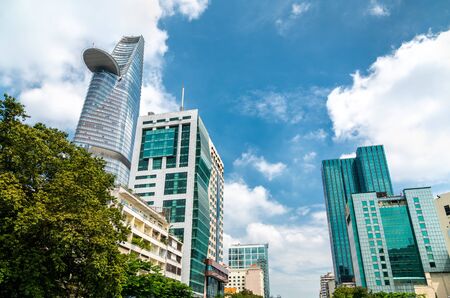 View of modern high-rise buildings Bitexco Financial Tower in Ho Chi Minh City, Vietnam