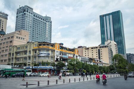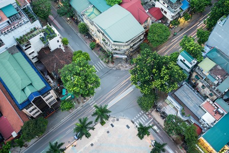 Hanoi, Vietnam - July 7, 2017: Aerial skyline view of Hanoi city, Vietnam at Ba Trieu - Doan Tran Nghiep crossroads