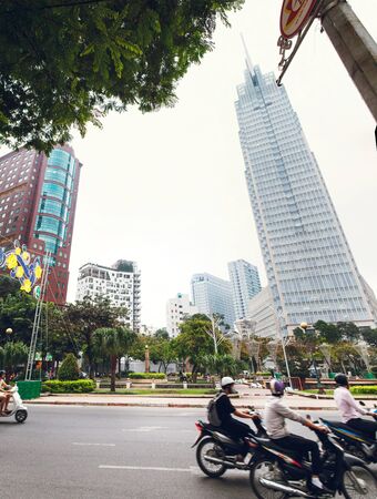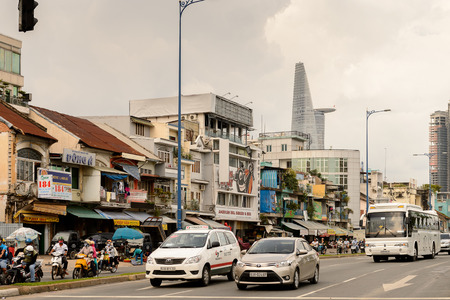 HO CHI MINH, VIETNAM - OCT 5, 2014: Architecture and traffic of Hochiminh (Saigon). Saigon is the largest city in Vietnam
