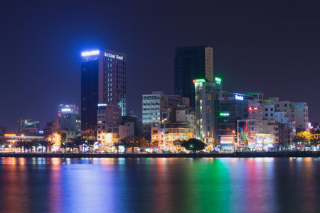 DA NANG, VIETNAM - JANUARY 06, 2016: City quay at night illumination in the late evening
