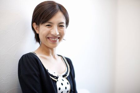 Portrait of a beautiful Asian woman in black shirt on dark background