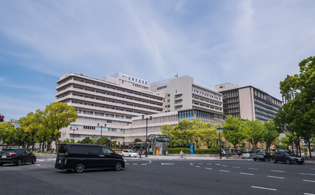 Hiroshima, Japan - May 5, 2016: The city street of Hiroshima city in Hiroshima Prefecture, Chugoku region, Japan.