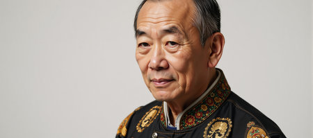 Old Chinese Man with Brown Straight Hair neon style Illustration.