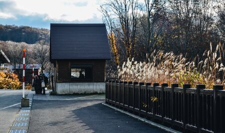 Aomori, Japan - Nov 4, 2019. Small wood cabin on the autumn forest of Aomori, Japan. Aomori is an incredible place to hunt for momiji (red leaves).