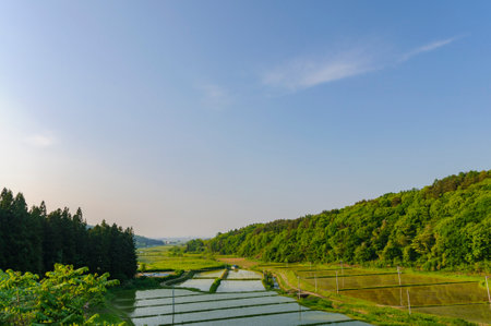 Landscape of Satoyama and rice paddies. Aomori, Japan