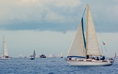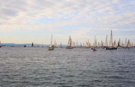 TRIESTE, ITALY - 14 OCTOBER 2012: In the minutes before the start of Barcolana regatta in Trieste sea, northern part of the Adriatic Sea. About 2000 boats and thousands of sailors from all over the world took part in the race.