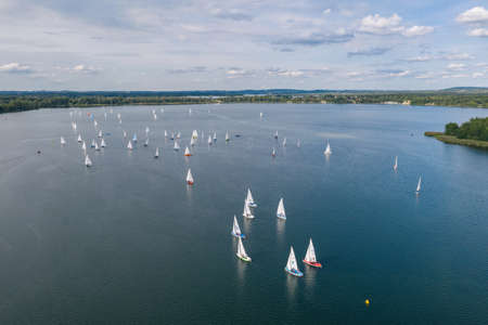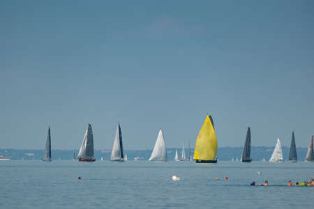 ZAMARDI - JULY 29: Sailing boats compete on the 52nd Blue Ribbon Championship at the Lake Balaton on 29 July 2020 in Zamardi, Hungary.