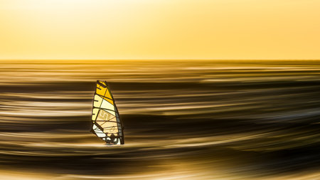 Windsurfing on the sea at sunset. Beautiful natural background.