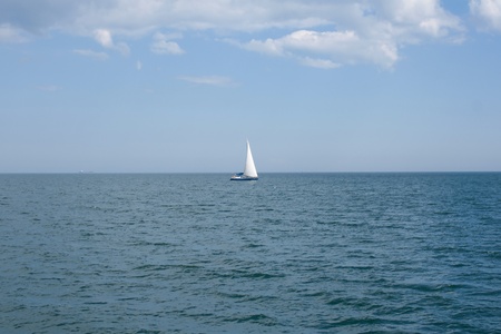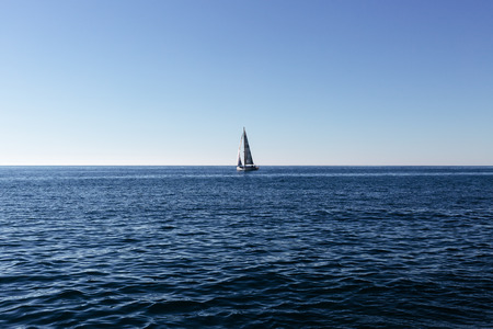 White Sailing Boat Sailing on the Horizon, Open Blue sea
