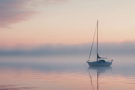 Serene Seascape in Soft Pastel Colors During a Tranquil Evening Hour with a Sailboat on the Ocean