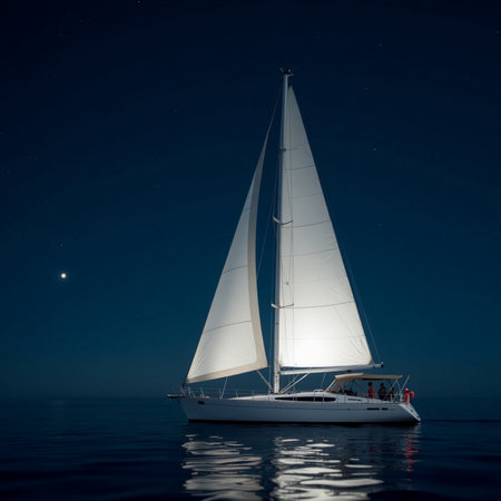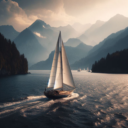 sailing boat, with sails unfurled, gliding across the water, created with generative ai