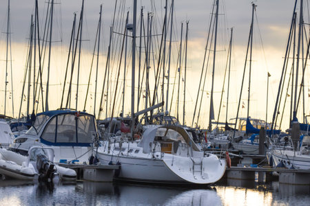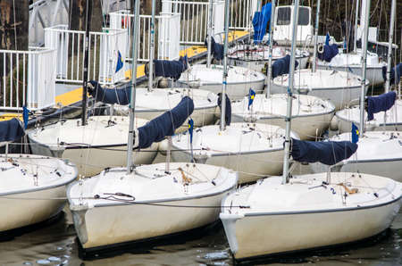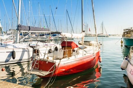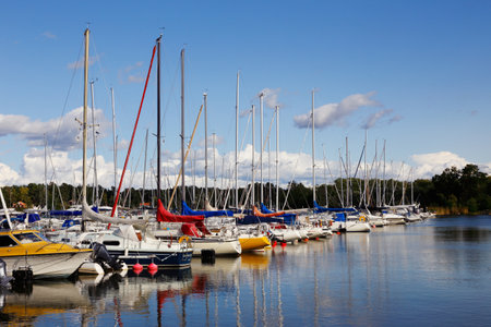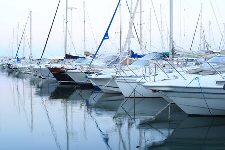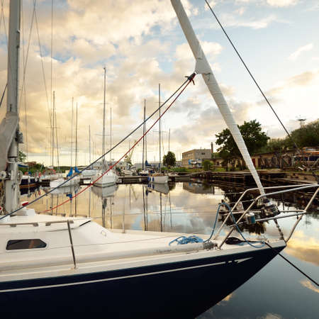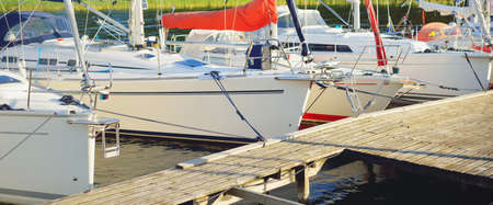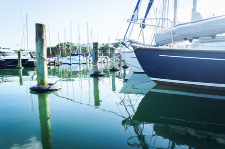 Sailboats and yachts in in harbor. Transportation