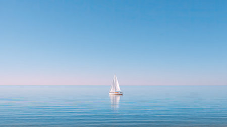 A serene sailboat glides effortlessly across the calm waters under a clear blue sky, capturing the essence of tranquility and adventure in nature.