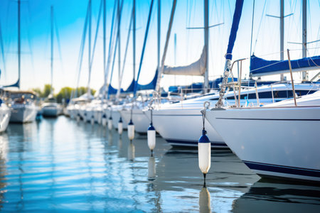 Bright and airy image of tall yacht masts reaching towards a clear blue sky, evoking a sense of calm and adventure in a picturesque nautical setting. Perfect for travel or leisure themes.