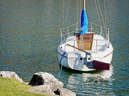a piece of yacht that is on the water and moored to the shore