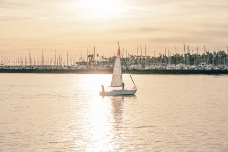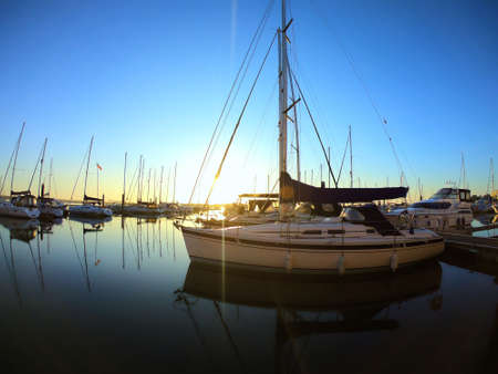 Sailboat harbor at sunset