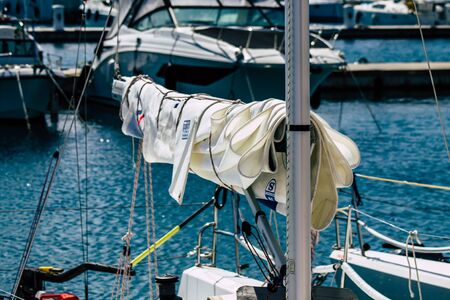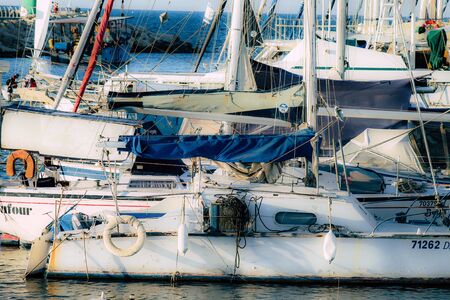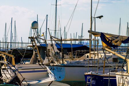 Limassol Cyprus March 17, 2020 Closeup of boats moored in the marina of Limassol in the afternoon
