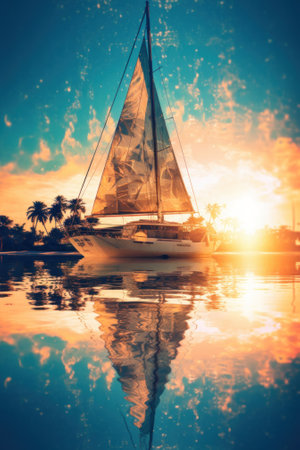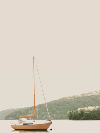 A sailboat floating on top of a body of water. Generative AI image.