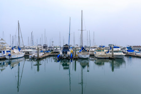 Morro Bay, California, USA - May 27, 2021 Yachts moored at marina harbor, Morro Bay State Park, California Central Coast