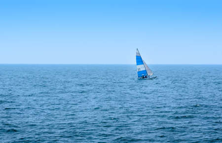 White Sailing Boat Sailing on the Horizon, Open Blue sea