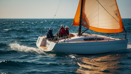 Sailing yacht on blue water, wind and waves, summer adventure generated by artificial intelligence