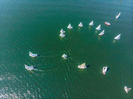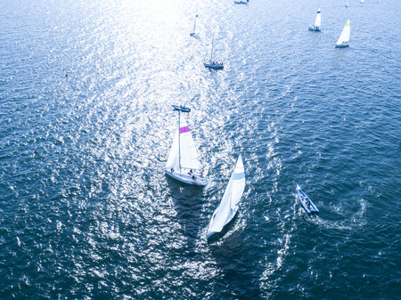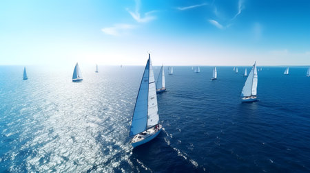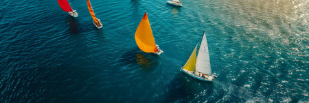 Sailing Sport: Beautiful Aerial Landscape of Yachts in Action