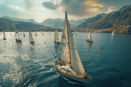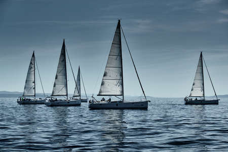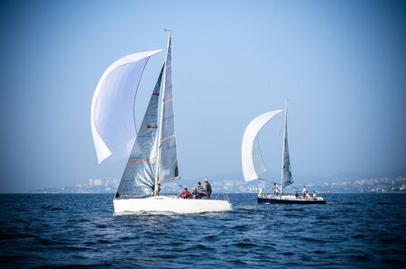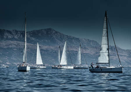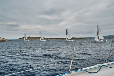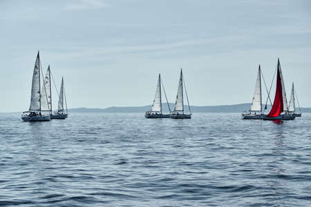 Racing sailboats compete during Sailing regatta in Mediterranean