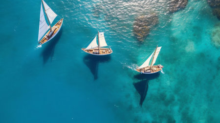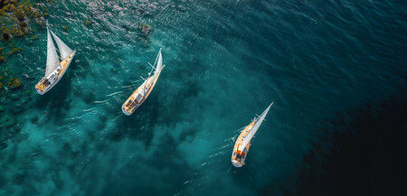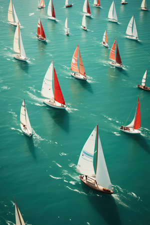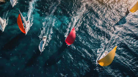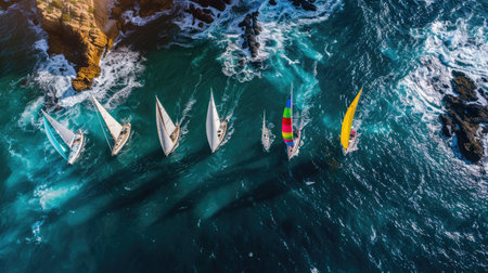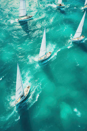 Sailing Adventure: Top View of Fast Boats Competing in a Marine Race