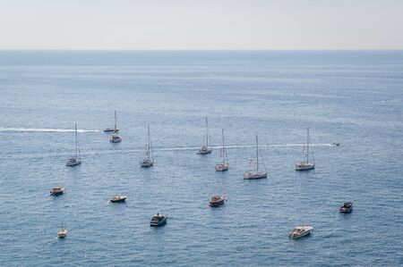 Sailing yachts anchorage at Amalfi coast. Positano, Italy.