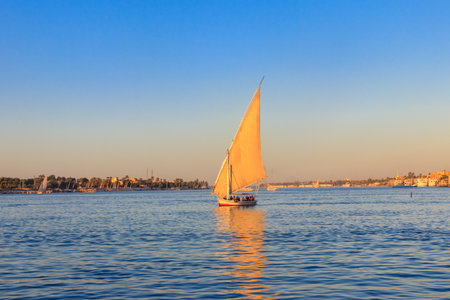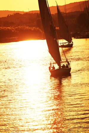 Sailboat on Nile at sunset in a summer evening