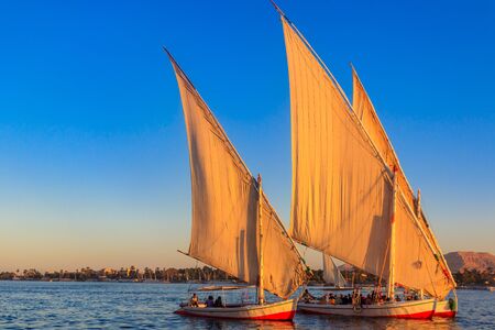 Felucca boats sailing on the Nile river, Luxor, Egypt