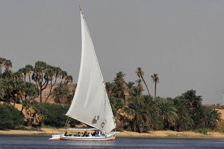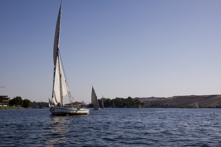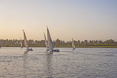 Cruising along the Nile river on Felucca boats, Nile, Egypt. High quality photo