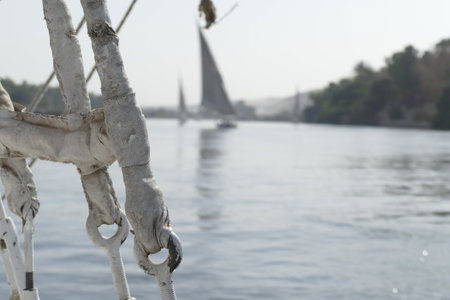 See a traditional Nile river felucca, navigating the ancient pharaonic river. This photo shows the timeless beauty of a felucca sailing down the historic river.