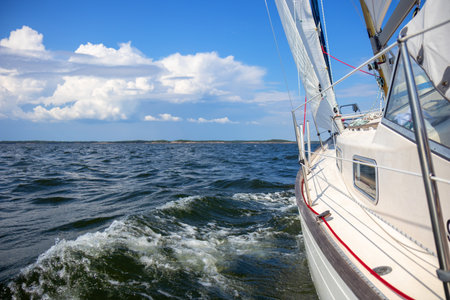 Yachting yacht sailboat sailing in baltic sea blue sky sunny day summer vacation. Tourism luxury lifestyle.