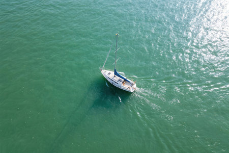 Elegant sailboat gliding over turquoise waters a stunning aerial photography perspective