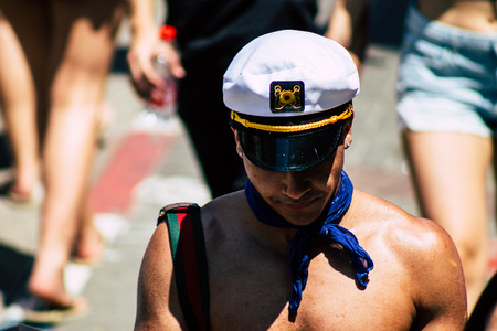 Tel Aviv Israel June 14, 2019 Portrait of unknown Israeli people participating to the gay pride parade in the streets of Tel Aviv in the afternoon