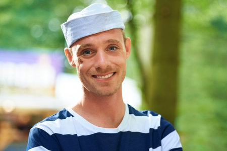 Ahoy, Sailor. Portrait of a handsome guy in a sailor outfit at a music festival.