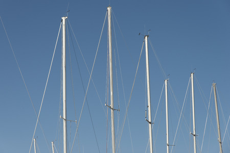 Masts of sailing yachts against the blue sky. sea background pattern