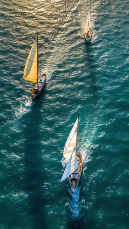 Sailing Sport: Beautiful Aerial Landscape of Yachts in Action