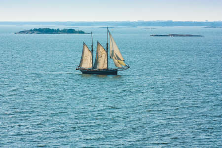 Sailing ship in the Mediterranean Sea on a sunny summer day.