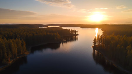 Generative AI : Aerial view of Lake Uhtjarv with woody shores in autumn time in Urvaste Estonia