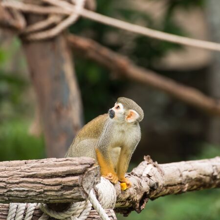 Common squirrel monkey, Saimiri sciureus, a species of squirrel monkey from Guiana, Venezuela and Brazil. Animals watching