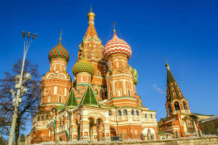 Moscow, Russia, Red square, view of St. Basil's Cathedral in winter, bright day