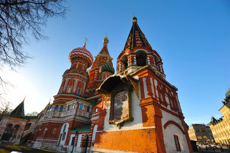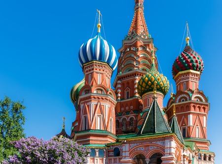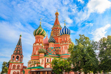 Moscow, Russia, Red Square. View of St. Basil's Cathedral on bright sky background