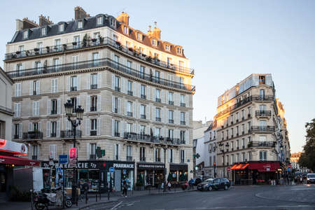 Paris, France - November 14th 2021: Row of historic houses along a narrow street.