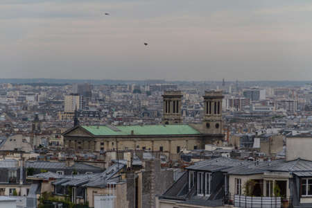 Paris, France, February 12, 2016: veiw to Paris from metro Blanche entrance, montmartre area, in Paris, France